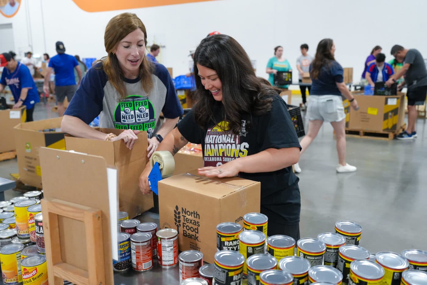 स्वयंसेवकों के कई समूहों ने हाल ही में दान किए गए डिब्बाबंद खाद्य पदार्थों को छांटने और पैक करने में समय बिताया। कैनस्ट्रक्शन डलास अन्य लोगों ने खुदरा दुकानों द्वारा दान की गई वस्तुओं को छांटकर एनटीएफबी के साझेदारों के पैंट्री में भेजा, ताकि उन्हें भूख से जूझ रहे पड़ोसियों में वितरित किया जा सके।.