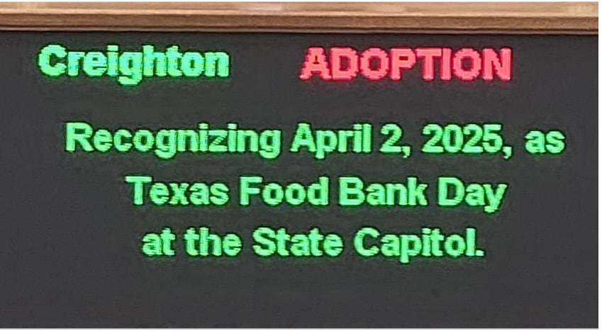 2025年4月2日,来自北德克萨斯州的60多位倡导者前往奥斯汀,与他们的立法者会面。出席者包括我们的合作机构、相关团体、理事会成员、北德克萨斯州食品银行协会(NTFB)工作人员以及德克萨斯大学达拉斯分校的学生。参议院宣布2025年4月2日为“州议会食品银行日”,以表彰我们的努力。.